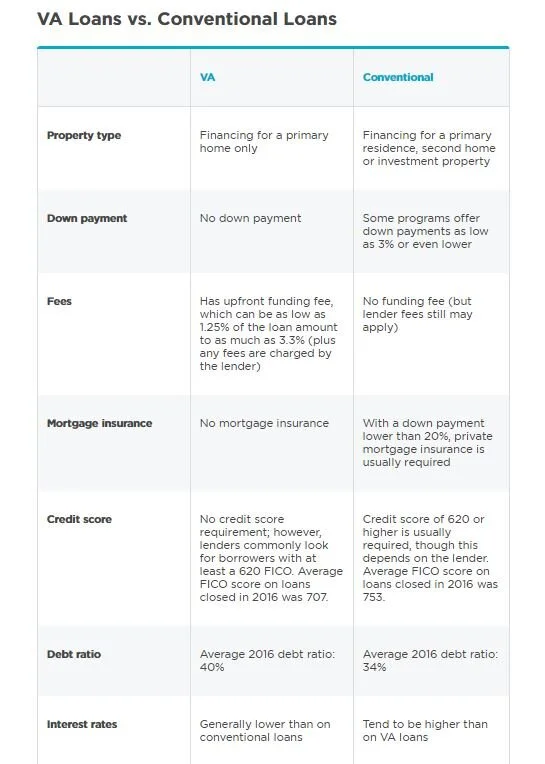 But when you consider things like the VA funding fee and perhaps putting enough money down on a conventional mortgage to forgo mortgage insurance, the choice may be more complex. And, some of the VA loan benefits, such as no minimum credit score and no maximum debt-to-income ratio, are often overstated.