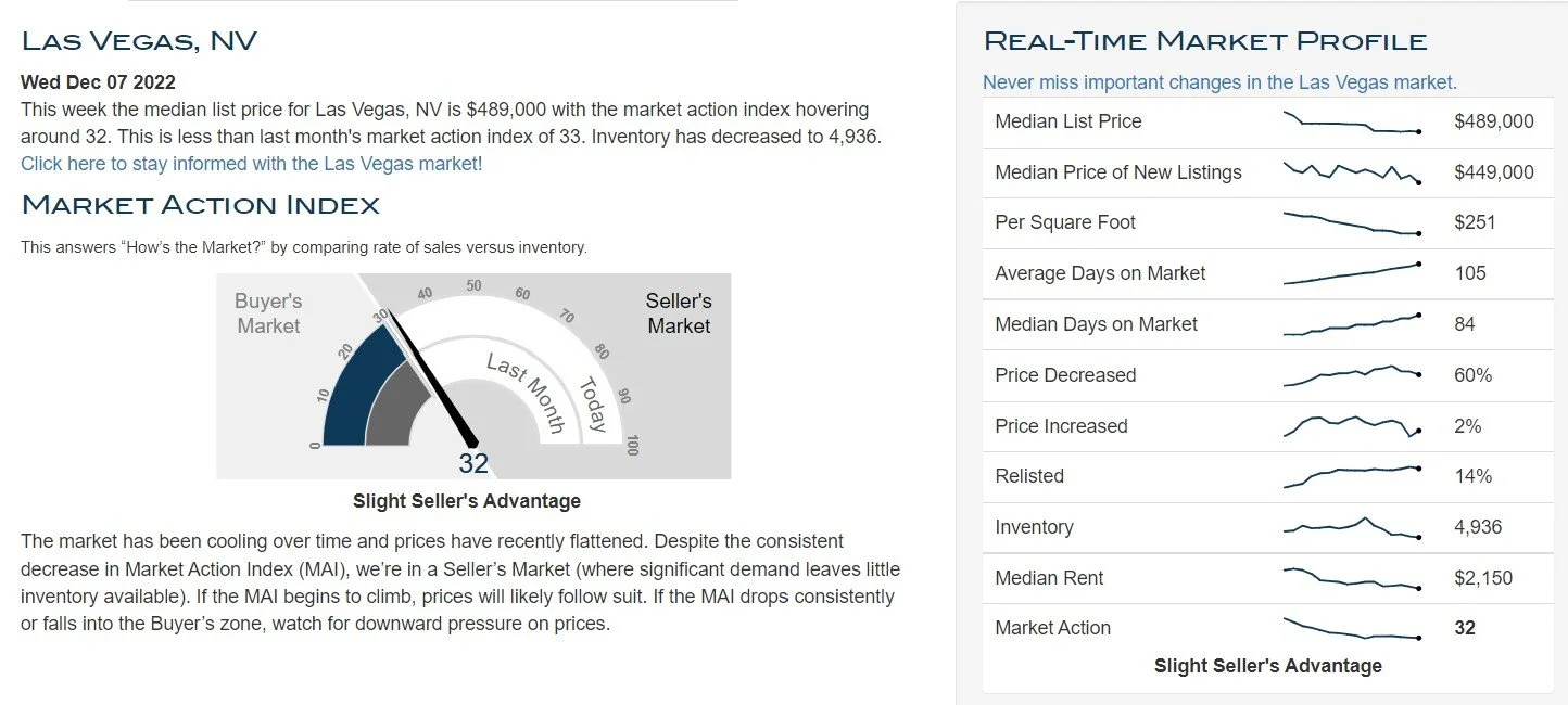 The real estate market has rapidly gone from only a few weeks of marketable inventory to just over 7 months of inventory. That coupled with falling sales and a significant drop in listings taken, buyers now have the initial negotiating leverage in most communities throughout Greater Las Vegas.